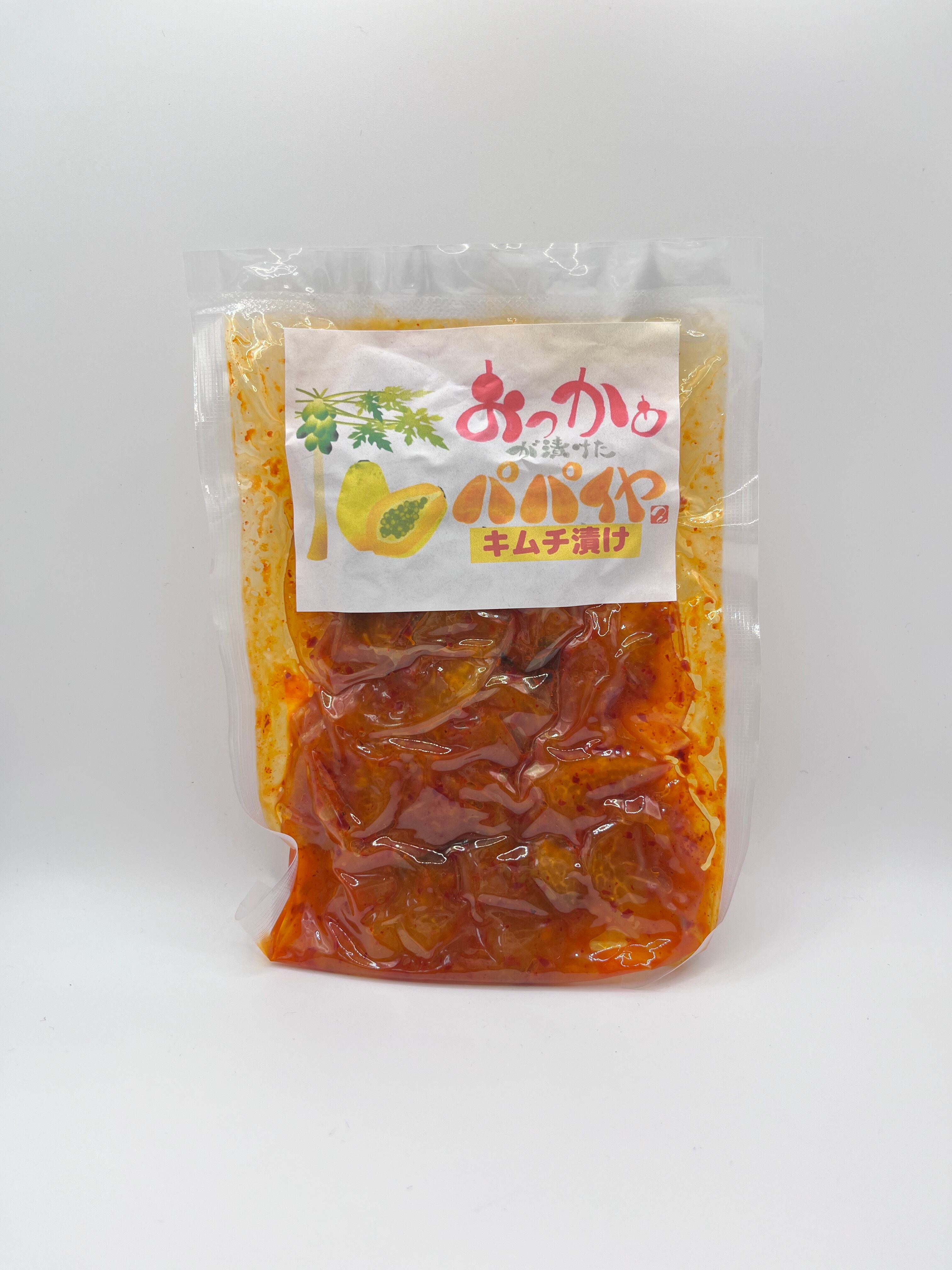 ヘルシーで栄養満点!沖永良部島産の新鮮なパパイヤを、特製のキムチにじっくり漬け込みました。パパイヤの自然な甘さと、キムチのピリ辛な味わいが絶妙にマッチし、一口で食欲をそそります。お酒との相性も抜群で、晩酌の際のおつまみや、ご飯のおかずにぴったりな一品です。