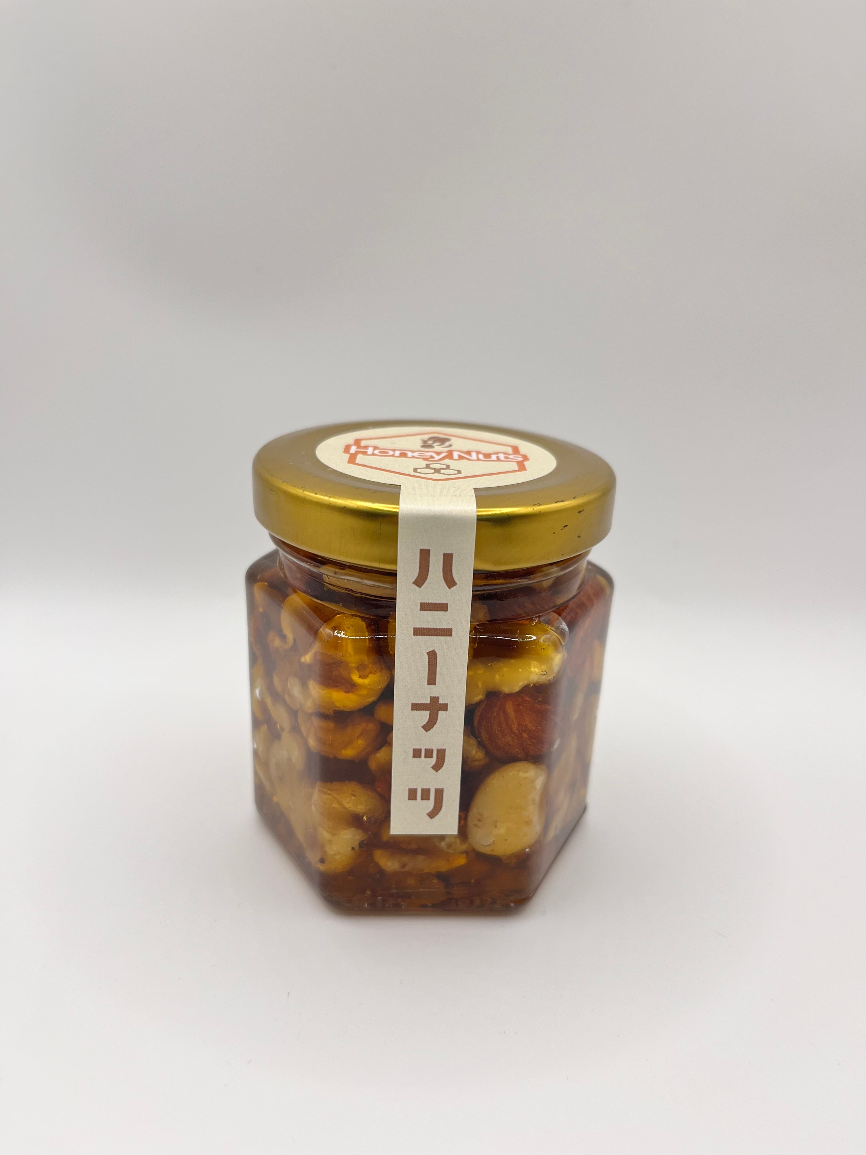 濃厚でビターな味わいが特徴の蜂蜜に、香ばしいミックスナッツが入っています。