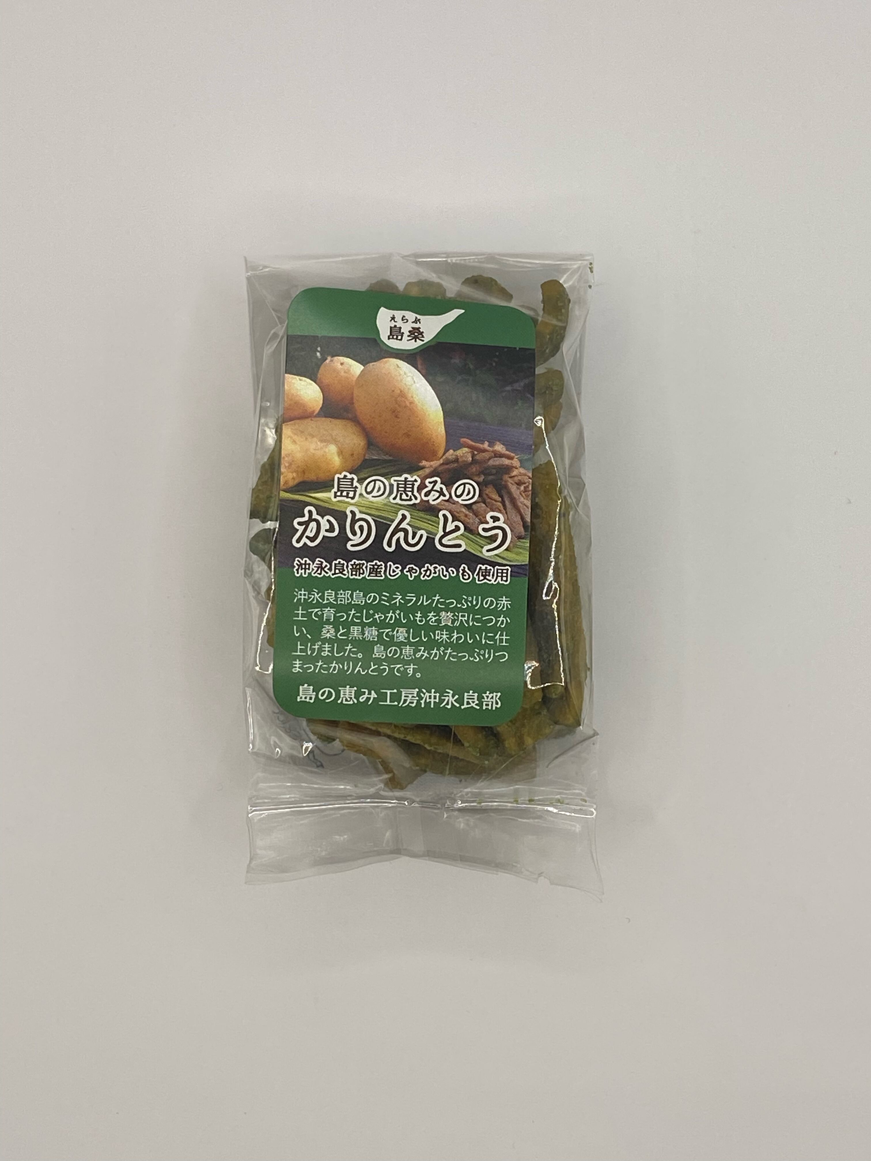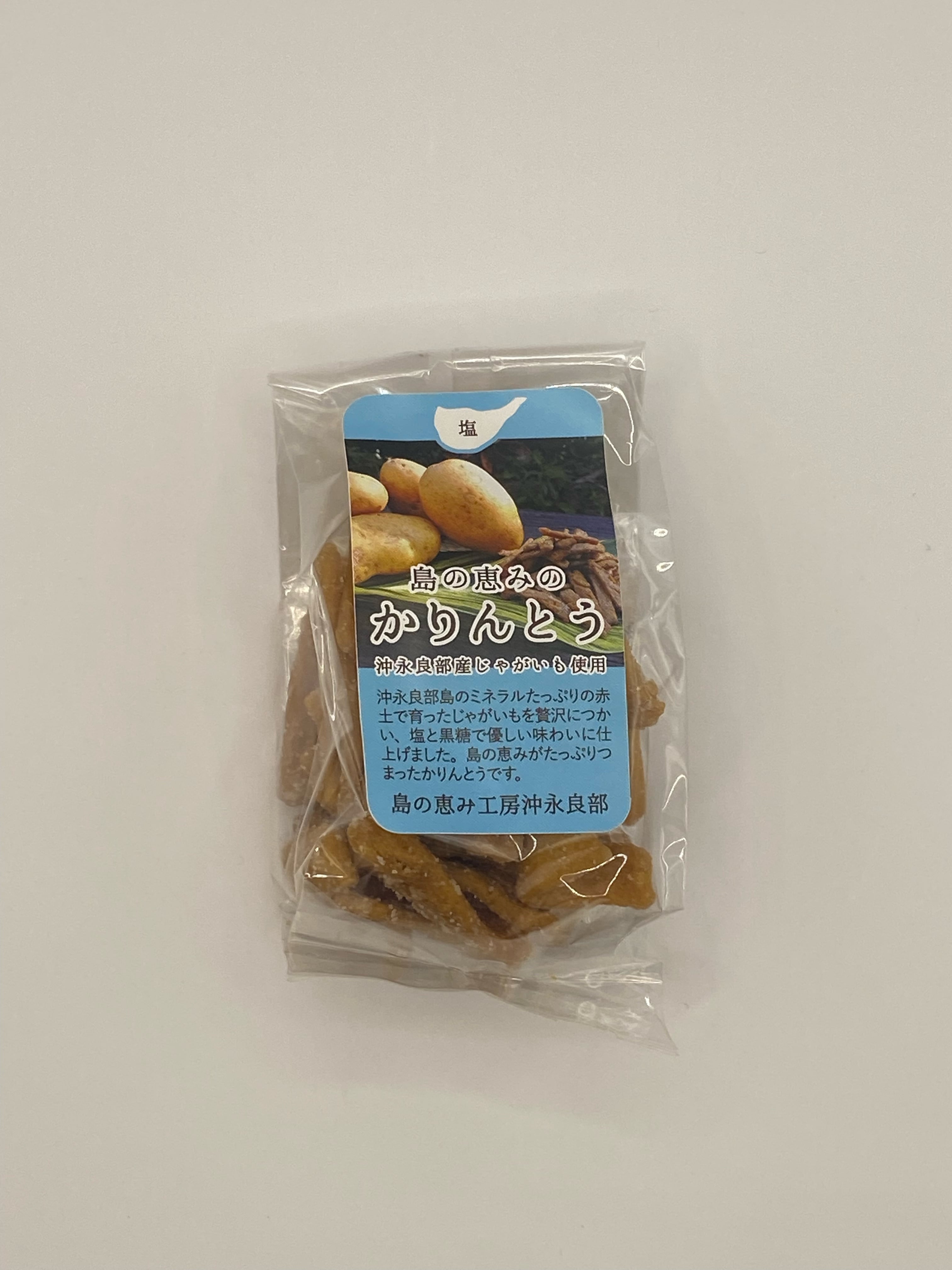 沖永良部島のじゃがいも「はるのささやき」を贅沢に使い、おからと合わせて米油で揚げました。ポリポリ、食べやすいかりんとうです。食べ始めたら止まらない美味しさでやみつきになりますよ。